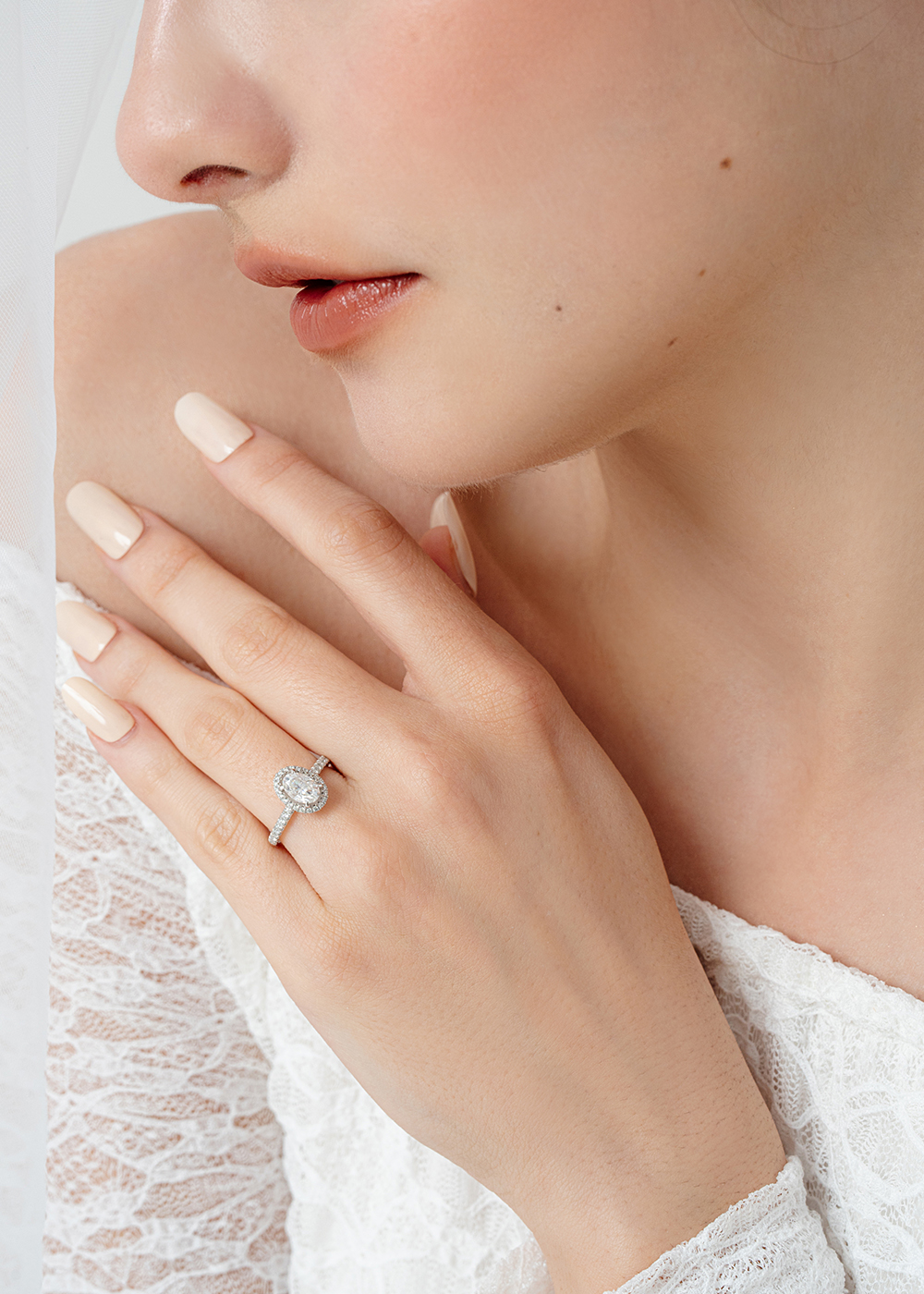 1 Carat Oval Halo Diamond Ring in Platinum